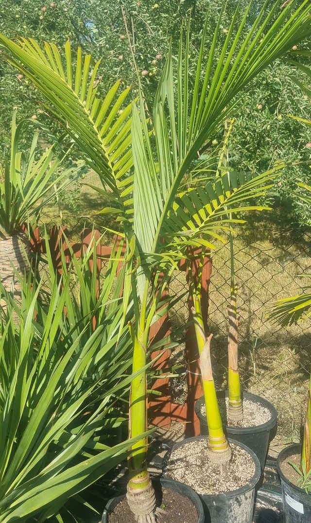Die Alexanderpalme (Archontophoenixalexandraecap ) ist eine schnell wachsende, aufrechte Palme mit einem schlanken, oft an der Basis verdickten Stamm und einem grünen oder purpurnen Kronschaft. Sie hat lange, fiederartige Wedel mit intensiv grünen Blättern, deren Unterseite oft silbrig schimmert, und kann eine Höhe von 20 bis 30 Metern erreichen. Ursprünglich aus den Regenwäldern Australiens stammend, ist sie eine beliebte Zierpflanze, die sich gut für Zimmer, Wintergärten oder geschützte Terrassen eignet