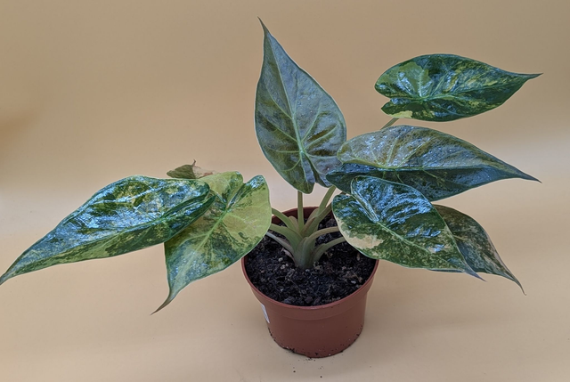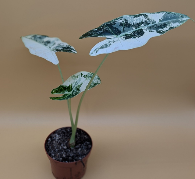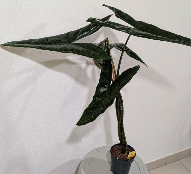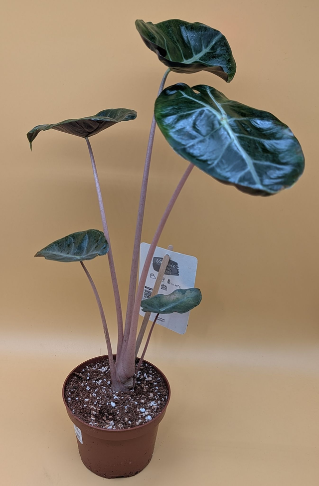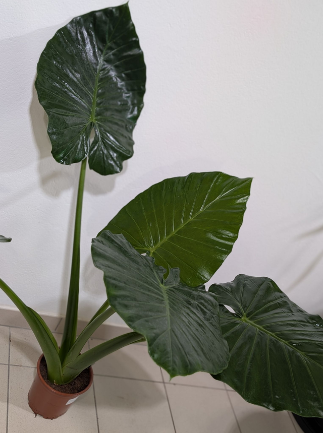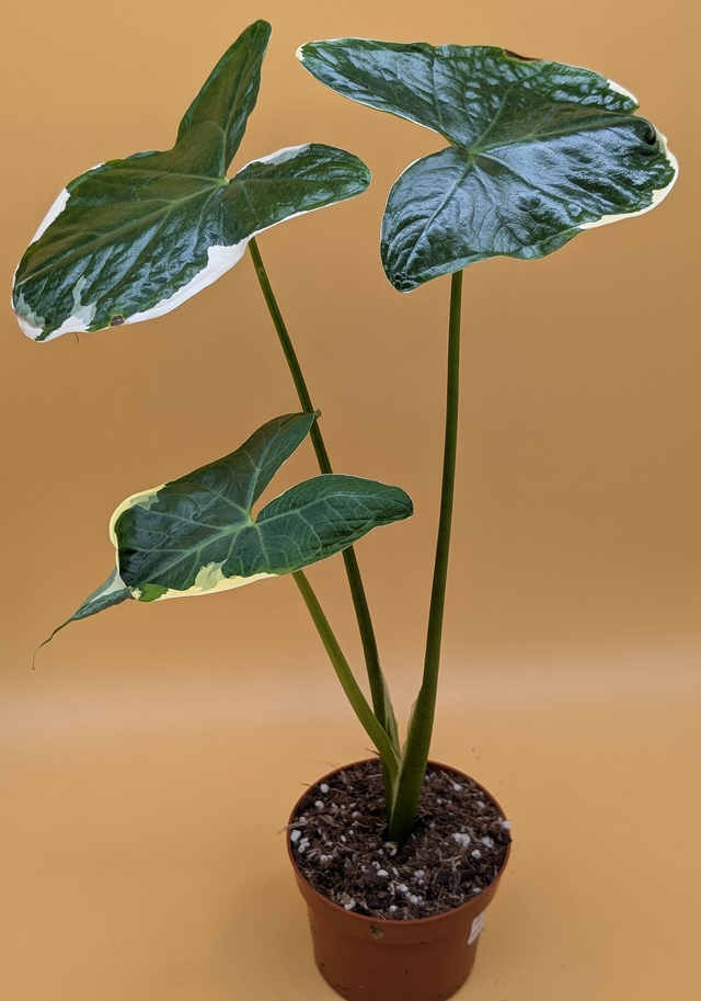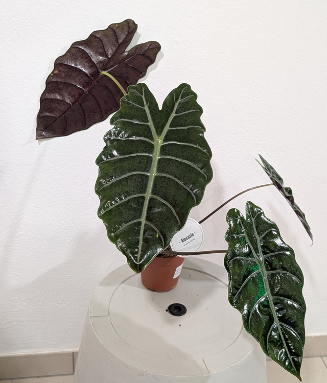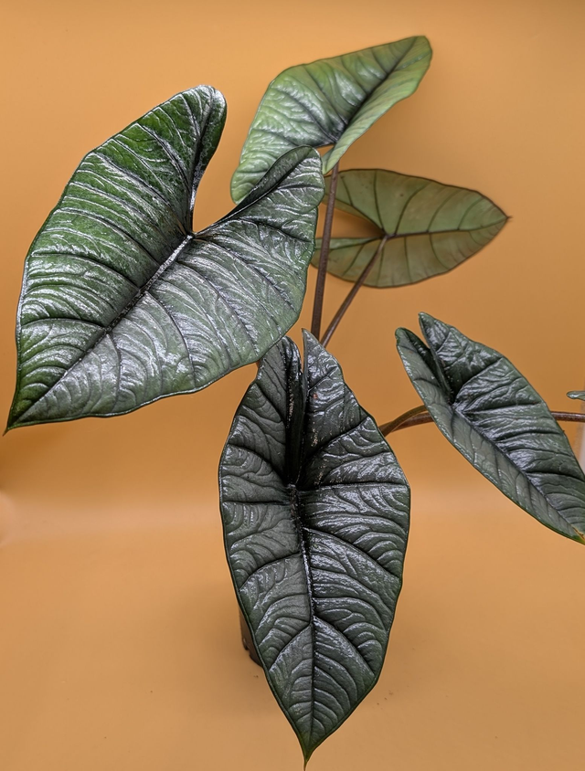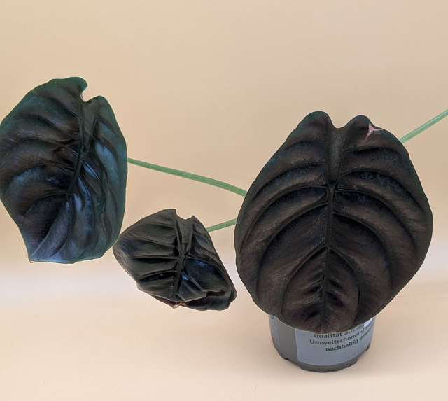 Alocasien, auch bekannt als Pfeilblätter oder Elefantenohren, sind immergrüne, krautige Pflanzen aus der Familie der Aronstabgewächse. Sie zeichnen sich durch ihre auffälligen, meist pfeilförmigen und sehr großen Blätter aus, die oft mit auffälligen Blattadern versehen sind. Diese tropischen Pflanzen sind bekannt für ihr exotisches, oft aufrechtes Erscheinungsbild und das warme, feuchte Klima, das sie bevorzugen.