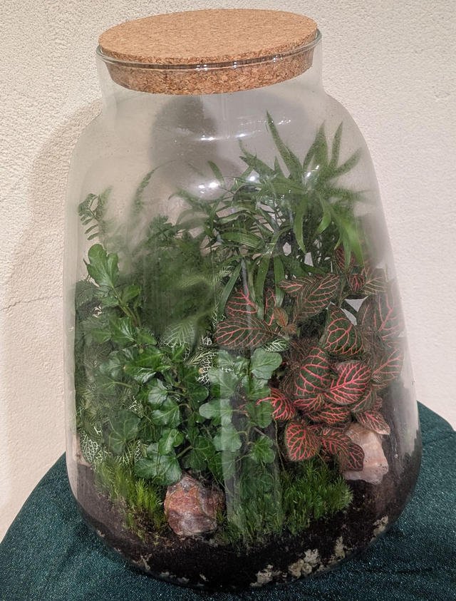 Flaschengarten bepflanzt