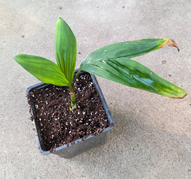Pinanga disticha ist eine buschige Zwergpalme aus Südostasien, die sich durch ihre auffälligen, gesprenkelten Blätter auszeichnet, die je nach Alter von dunkel- bis hellgrün mit gelben, weißen oder pinkfarbenen Markierungen reichen können. Die Pflanze wird etwa 1 bis 2 Meter hoch, bildet schmale Stämme und wächst in dichten Horsten. Ihr natürlicher Lebensraum sind feuchte, schattige Gebiete wie die Ränder von Regenwäldern oder Flussufer.Die Pflege der Pinanga disticha erfordert einen hellen, warmen Standort ohne direkte Sonne, regelmäßiges Gießen und hohe Luftfeuchtigkeit. Gießen Sie die Palme durchdringend, lassen Sie das Substrat aber nicht dauerhaft nass stehen und lüften Sie das Fenster regelmäßig. Wischen Sie die Blätter mit einem feuchten Tuch ab, um Staub zu entfernen.